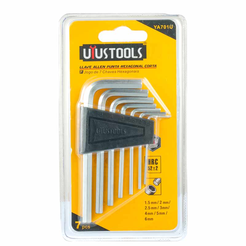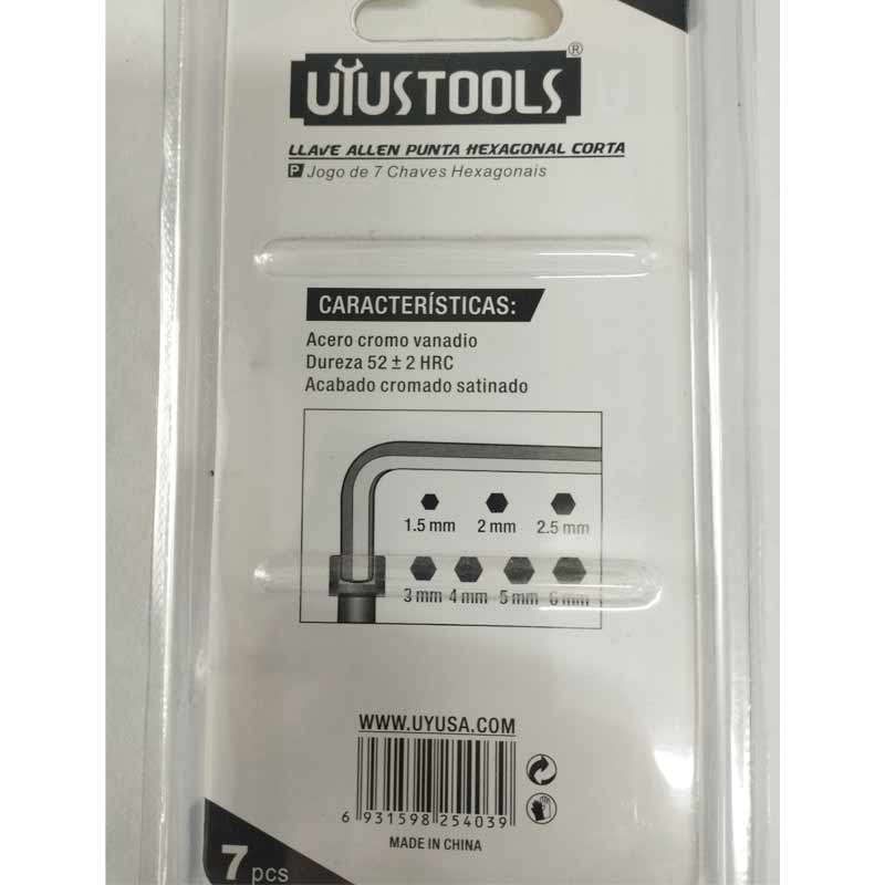 El Juego de 7 Llaves Allen Punta Hexagonal Corta YA701U UYUSTOOLS es una herramienta práctica, resistente y esencial para profesionales, técnicos y aficionados al mantenimiento o la mecánica.