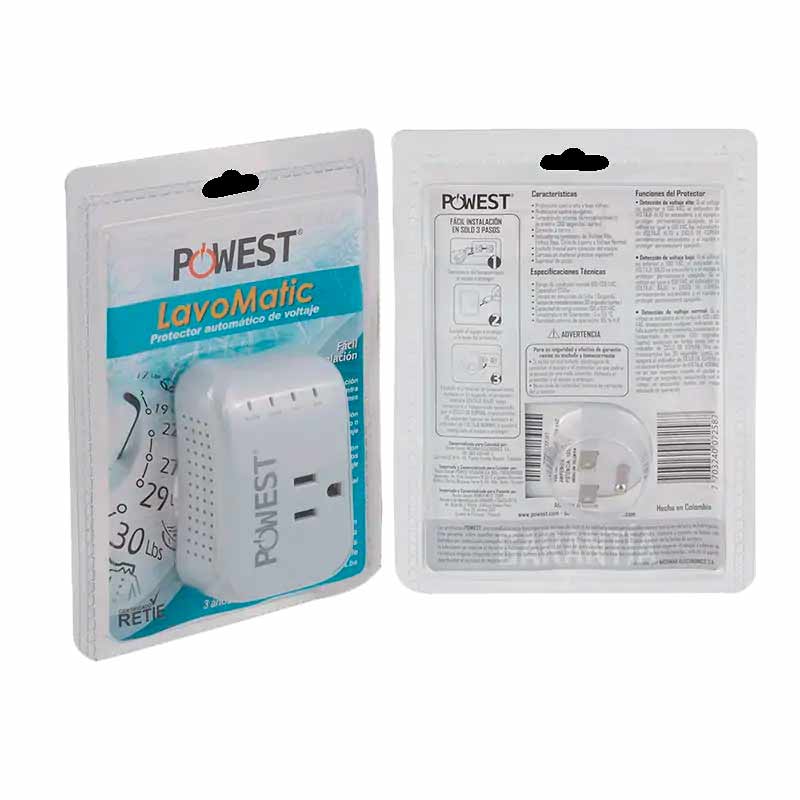 Los protectores de voltaje Powest lavomatic están diseñado para proteger lavadoras hasta 30 Lbs., protección de mini cortes de energía, Voltajes bajos, apagones, supresor de picos de voltaje con varistor, ciclo de espera de 30 segundos toma de salida nema 5-15r.