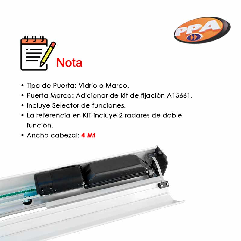 – Para uso en puertas con marco, es necesario usar los KIT de fijación para una hoja REF A15661 ó para dos hojas REF A15237.