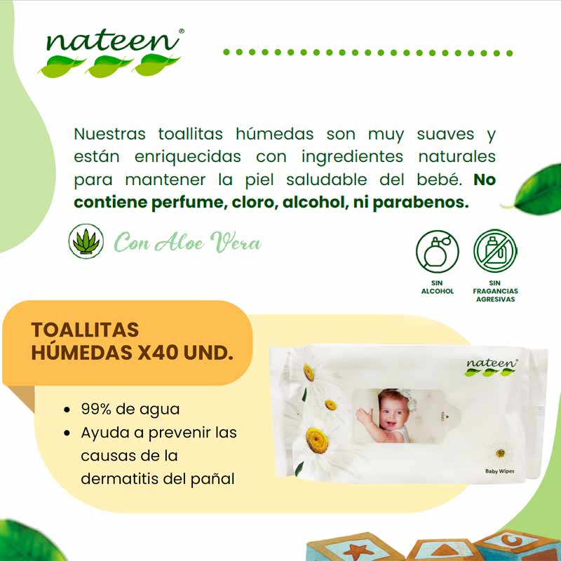 Las toallitas húmedas de Nateen están formuladas para pieles sensibles y son extra gruesas y suaves.