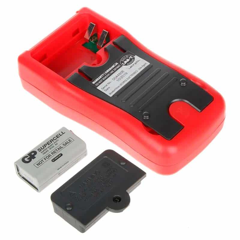 El UT132B de UNI-T es un multímetro digital del tamaño de la palma de la mano. Cuenta con una impedancia de entrada de más de 10 MΩ para DCV y prueba de voltaje de batería de 1,5 / 9 V.